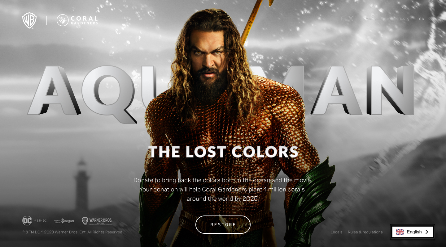 C’est l’expérience inédite que nous avons fait vivre aux fans du super héros pour sensibiliser le grand public à la disparition des coraux. Pour ce faire, nous avons imaginé un trailer inédit du film qui perd ses couleurs à l’instar des coraux dans l’océan. L’activation digitale portée par Coral Gardeners et Jason Momoa a généré une augmentation de +187% des dons envers l’association.